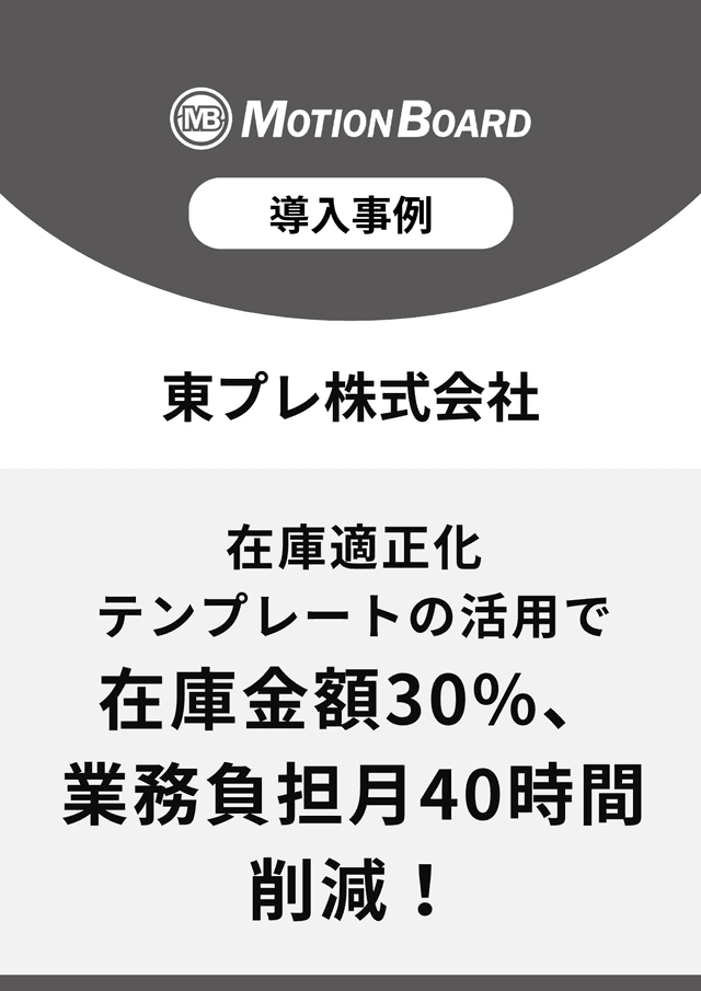 BIツール『MotionBoard』の在庫適正化テンプレートでダッシュボードを構築し、材料・部品の在庫状況を可視化。在庫切れリスク調査のスピード向上や、調査にかかる負担の削減などを実現した事例です。