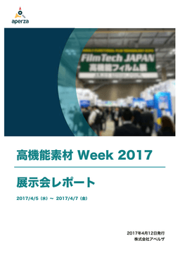 2017年4月5日〜7日に東京ビッグサイトで開催された「高機能素材 Week 2017」。樹脂、金属、セラミックスなどの高機能素材と、加工機械、分析機器、加工技術が一堂に集まった展示会です。