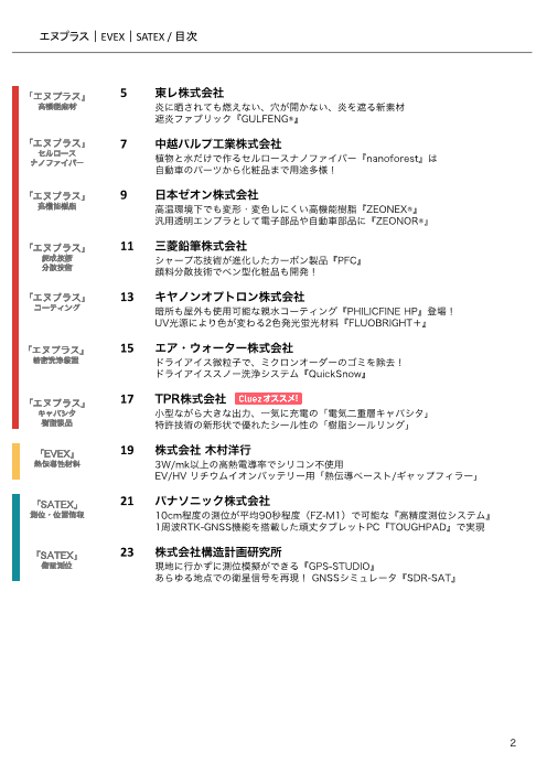 東レ株式会社、中越パルプ工業株式会社、日本ゼオン株式会社、三菱鉛筆株式会社、キヤノンオプトロン株式会社、エア・ウォーター株式会社、TPR株式会社、株式会社木村洋行、パナソニック株式会社、株式会社構造計画研究所