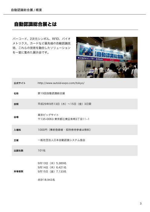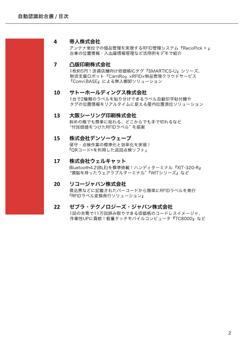 バーコード、2次元シンボル、RFID、バイオメトリクス、カードなど最先端の自動認識技術が集まる「自動認識総合展」。出展企業のカタログと展示会の様子をまとめたレポートをダウンロードいただけます。
