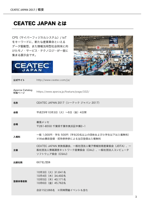 2017年10月3日~6日に幕張メッセで開催された「CEATEC JAPAN 2017」。CPS(サイバーフィジカルシステム)/ IoTをキーワードに、新たな産業革命といえるデータ駆動型、また情報活用型社会到来に向けたモノ・サービス・テクノロジ―が一堂に集まる展示会です。