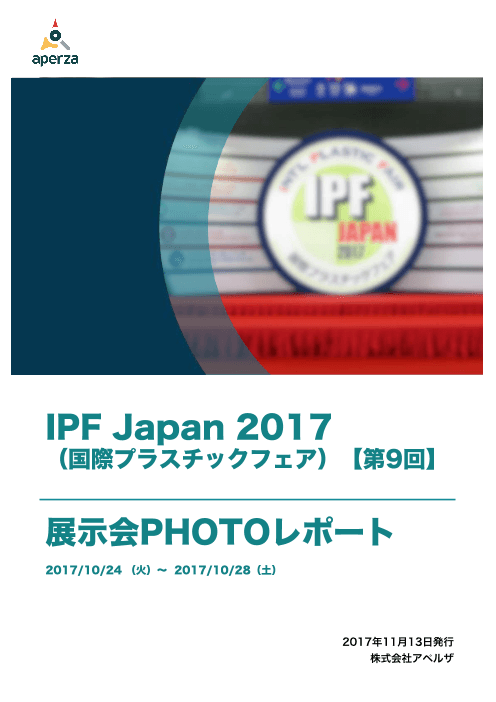 2017年10月24日~28日に幕張メッセで開催された「IPF Japan 2017 (国際プラスチックフェア) 【第9回】」。プラスチック・ゴムに関する原材料、機械、製品、リサイクル機器、受託加工などが一堂に集まる展示会です。