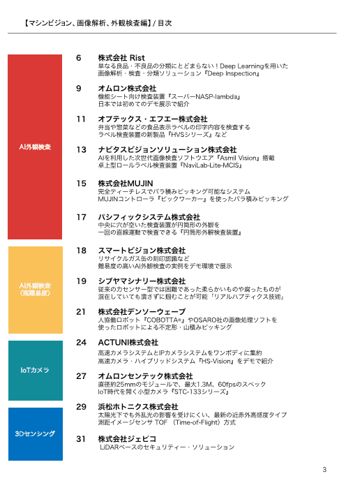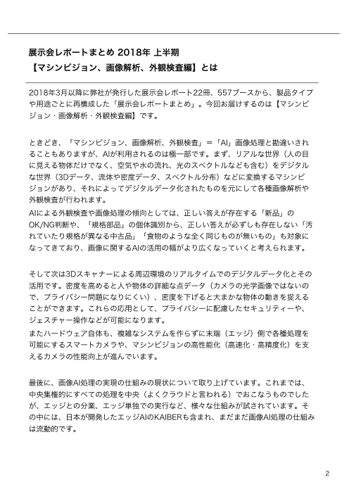 2018年3月以降に弊社が発行した展示会レポート22冊(557ブース)から、製品タイプや用途ごとに再構成した「展示会レポートまとめ」。今回お届けするのは【マシンビジョン・画像解析・外観検査編】です。