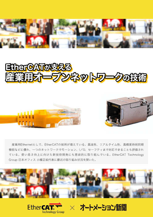 産業用Ethernetとして、「EtherCAT(イーサキャット)」の採用が増えている。高速性、リアルタイム性、高精度時刻同期機能などに優れ、一つのネットワークでモーション、I/O、セーフティまで対応できることも評価されている。使い易さ向上に向けた新技術開発にも意欲的に取り組んでいる。