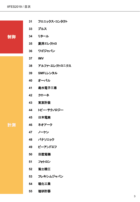 IDEC、菊水電子工業、サトーパーツ、GMIジャパン、デルタ電子、ネオアーク、B&R、ピーアンドエフ、フォトロン、リタール、Team Cross FA、SUS、東芝グループ、パトライト、日商エレクトロニクス、ワゴジャパン、渡辺電機工業、オーバル、ハイテック・システムズ、図研エルミック、京都EIC、日本電機研究所、ヒルシャー・ジャパン、理化工業、ヴィッテンシュタインターナリー、アムニモ、東洋電機、トビー・テクノロジー、ピルツジャパン、スリーエムジャパン、プルス、ABB日本ベーレー、オーム電機、日本電商、ノーケン、フレキシムジャパン、日本認証、ハカルプラス、HMSインダストリアルネットワークス、ケーメックス、パナソニック、フエニックス・コンタクト、キヤノンITソリューションズ、シュナイダーエレクトリックホールディングス、タカチ電機工業、エム・システム技研、アルファ・エレクトロニクス、Qlight、クローネ、シェルパ、大電、東京計装、東電社、東洋技研、八光オートメーション、リゴルジャパン合同会社、菱洋エレクトロ、SMFLレンタル、富士精工、理研計器、ジェイティエンジニアリング、日置電機、光洋電子工業、IMV