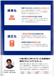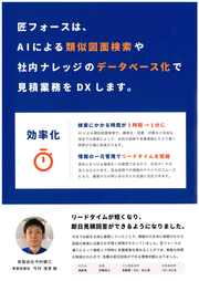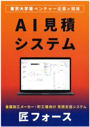 ※金属加工メーカー・町工場向け ・効率化 検索にかかる時間が1時間→1分に 情報の一元管理でリードタイムを短縮 ・標準化 見積プロセスのルール化でばらつきをなくす ベテランの暗黙知を全社で共有 メーカー同行にて詳しいご説明できますので気になる方は是非営業窓口までご連絡ください。