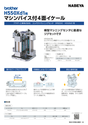 H550Xd1用ロックタイトCV精密マシンバイス付4面イケール ■寸法図 アイボルトは取り外してご使用ください 取付けワーク最大寸法 巾 ワークサイズ (巾×最大口開き×高さ) 100mmの場合 100×210×100 125mmの場合 125×210×98 150mmの場合 150×210×95 ※ワーク重量はバイス1台あたり、17kg未満としてください テーブル最大積載質量:300kg ■口金追加工例 口金交換方式により、精度修復・別作口金製作・口金材質の変更ができ加工範囲が広がります。 固定アゴ上面、可動体上面に追加工を施すことで口開き以上のワークがクランプ可能になります。 口金使用例集 https://www.nabeya.co.jp E-mail : nabeya@ons.co.jp ●掲載ロゴ使用はブラザー工業㈱様の許可を得ております。また当製品は、株式会社ナベヤの商品でありブラザー工業株式会社様とは関係ございません。 ●製品についての価格や納期などのお見積りは、お取引のあります商社様または販売店様へご連絡ください。 ●掲載の仕様は2023年4月21日現在のものです。予告なしに変更する事がありますがご了承ください。 営業本部/〒 500-8433 岐阜市若杉町 25 TEL.(058)273-6521 FAX.(058)278-0022