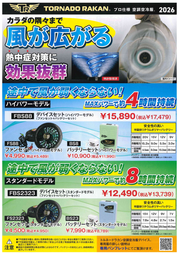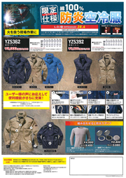 ユーザー様の声にお応えして便利機能が充実した防炎空冷服のご紹介です! 1.脇下排気口 体内に籠る熱を放出! 2.袖口アジャスター 袖口から風漏れ防止! 3.ダブル前立て 2枚重ねの前立てでファスナーをガード! 4.両胸 大型ポケット 大き目のスマートフォンも収納可能! 5.両脇ポケット内 フック掛けベルト 使わない時は収納可能 6.楽らく電池操作ポケット ポケット内でバッテリーの操作可能 7.フルハーネス対応! 8.サイドバッグファン 高めのファン位置で全身に風が巡る! ファンバッテリーも資料に載っていますので、ご確認ください!