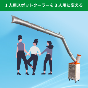 1人用スポットクーラーに取り付けるだけで最大3人を冷却!暑熱現場での作業や、炎天下の熱中症対策に最適