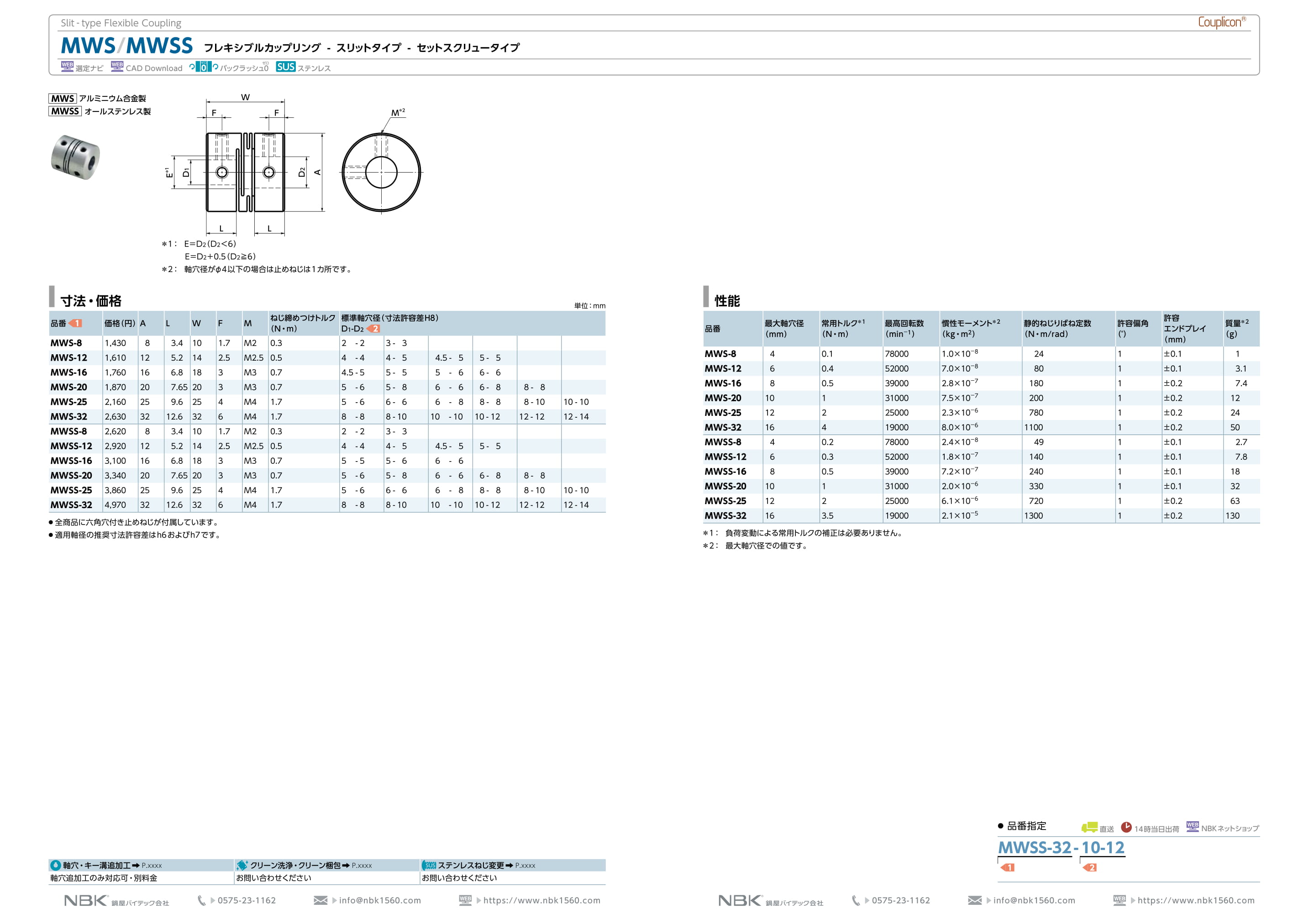 | シリーズ | MWS/MWSS フレキシブルカップリング スリットタイプ |