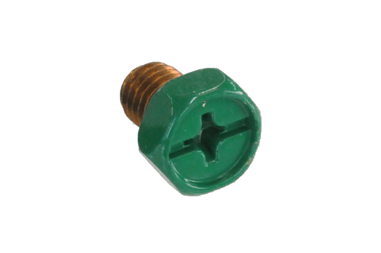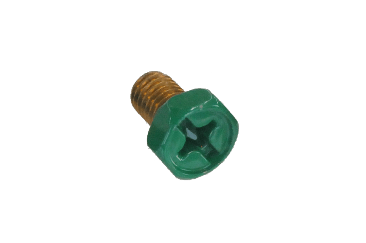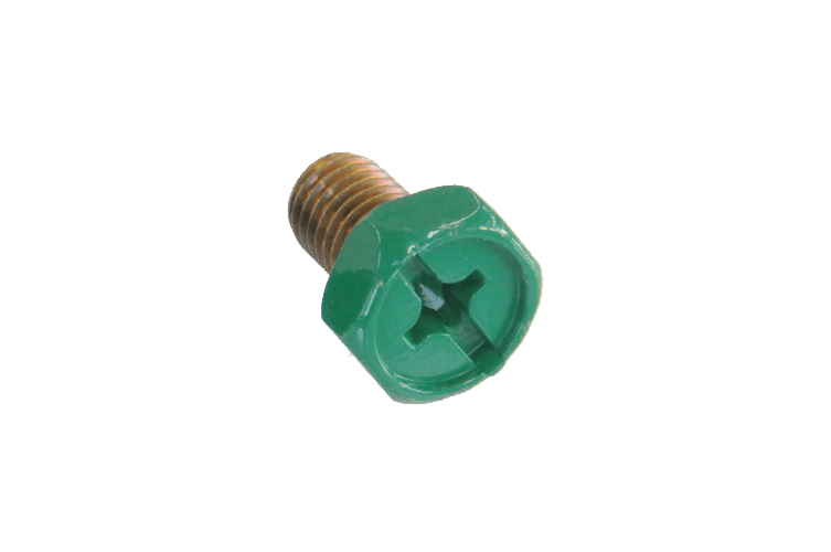 接地端子用のグリーン着色ボルトです。【特長】・色がはがれない焼付塗装がほどこしてあります。・+ーどちらのドライバーも使用できます。・BGSは便利なワッシャー付です