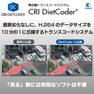 「CRI DietCoder」は要求レベルが高いアミューズメント業界で、30年以上映像圧縮を手がけてきたCRI・ミドルウェアのノウハウを凝縮したトランスコードシステムです。