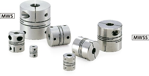 円筒材にスリットを入れた完全一体構造のカップリング。【特長】・バックラッシュ0。・ショートタイプ。オールステンレスタイプも標準化。・円筒材にスリットを入れた完全一体構造の金属ばねカップリング。・スリットで形成された板ばねが、偏角・エンドプレイを許容。・アルミニウム合金製・オールステンレス製の2種類あり。・標準タイプMST / MSTSとショートタイプMWS / MWSSあり。【用途】・搬送装置 / XYステージ / パーツフィーダなどに。
