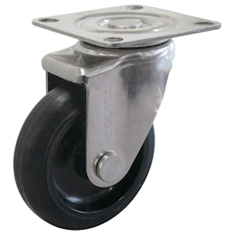 【特長】・耐水性・耐食性に優れたオールステンレス製です。・金具がオールステンレスのため、水まわりでの使用に適しています。・走行性、耐荷重性を備えた標準的な軽・中量荷重用キャスターです。運搬台車やロールボックスパレット、その他一般作業用に数多く使用されている標準寸法のキャスターです。・125mm、150mmはステンレスベアリング入で車輪の回転が良好です。【商品仕様】・許容荷重(daN):120・許容荷重(kgf):122.4・車輪径D(mm):100・車輪幅(mm):30・取付高H(mm):132・取付座A×B(mm):90×90・取付ピッチX×Y(mm):68~71×68~71・取付穴径P(mm):11・プレート式・自在式・自在旋回部:ダブルベアリング入・JANコード:4989999469080・トラスココード:818-5254・質量:0.75kg【材質/仕上】・金具:ステンレス・車輪:ナイロンホイルゴム