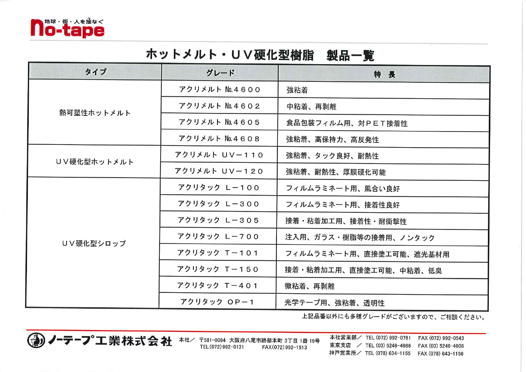現在も履物用の接着剤における60%のシェアを当社製品が占めています。その後、自動車関係、建築建材、家具木工など、各業界用の多様な接着剤を開発し、市場のニーズに応えています。