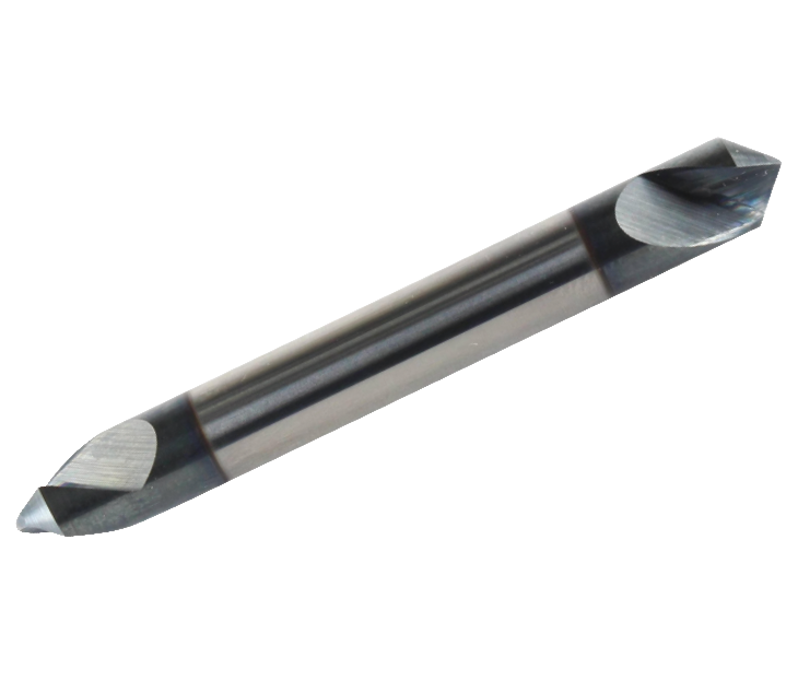 先端角(120°)と面取り角(60°または90°)の2つの角度によりセンタリング…