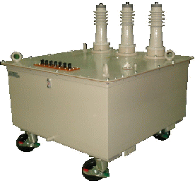 一般計測用変圧器は一般に普通計測用として使用されます。 写真は、最高電圧23kV(公称電圧22kV)に対応した、油入りの計器用変圧器です。1次Y-2次Y(中性点付き)結線の三相計...