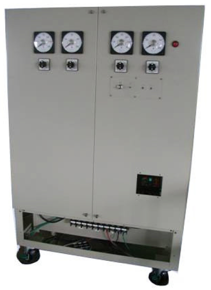 本器はサーキットブレーカのインスタント試験用試験装置です。 電流値は、250~6800Aと可変出来ます。 3種類の通電時間を設定でき、電流は摺動形電圧調整器の調整による変圧器一...
