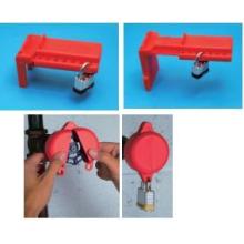 ボールバルブのハンドルを回せないようにロックアウトします。