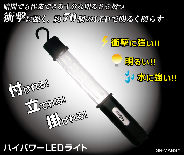 堅いアスファルトに落としたり、強くぶつけた場合にも破損しにくく衝撃に強い高い耐久性のハイパワーLEDライト! 破損しにくいので、工事現場や工場作業、アウトドアでも気にせ...