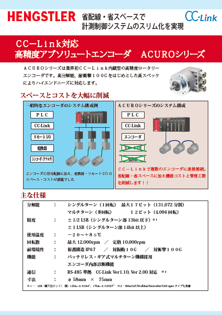 アブソリュートエンコーダAC58 CC-Linkシリーズは、CC-Link変換器内蔵型で別置き変換...