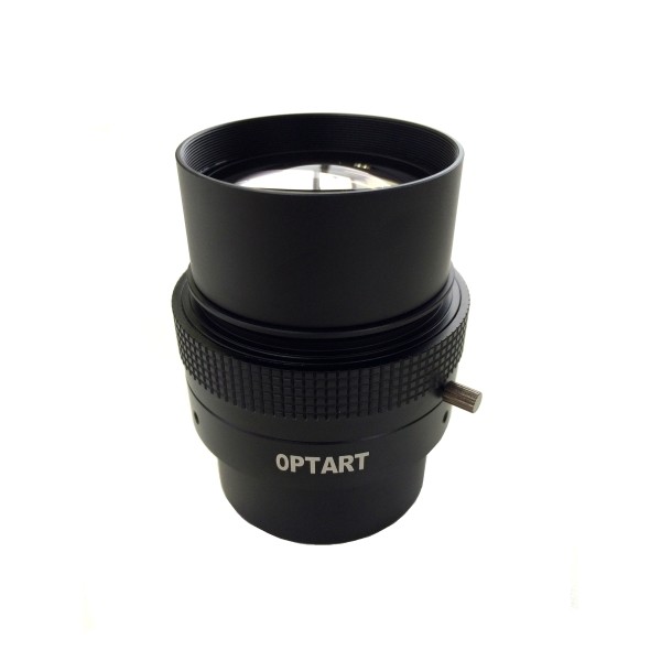 イメージセンサカメラの前に装着する事によりマスターレンズ(テレセン系又はマクロレンズ系)の被写体距離(W.D)を変えずに画面視野を倍率分だけ拡大します。