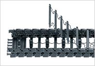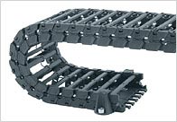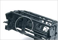 新しいアイデア満載の3パーツ型エナジーチェーン - E3シリーズは、短いピッチで円滑・静かな走行を実現。また、組み立てが簡単で、高い安定性を持ち、そして高い経済性を有します。 E3にはピボット・穴あき連結部分がなく、各リンクはバネ式コネクターで接続します。 これにより、ほぼ完全な摩耗フリーを実現しました(クリーンルーム対応)。 各リンクをつなぐスプリングストリップは10リンク単位で組付け、組立て時間とコストの削減を実現。 また、E3の開発目的である、確実なESD保護の実現も達成しました。 各リンクを繋ぐスプリングコネクターの材質には導電性があり、高い曲げ応力下やさまざまな取付け形態でも、常に一定の導電率を確保します。