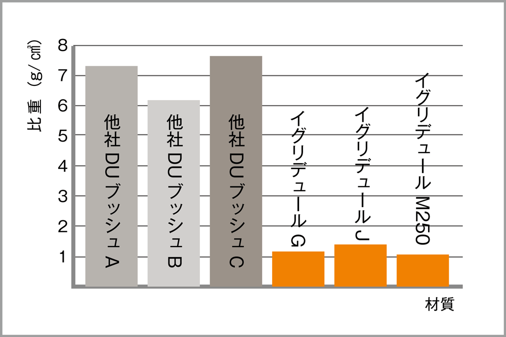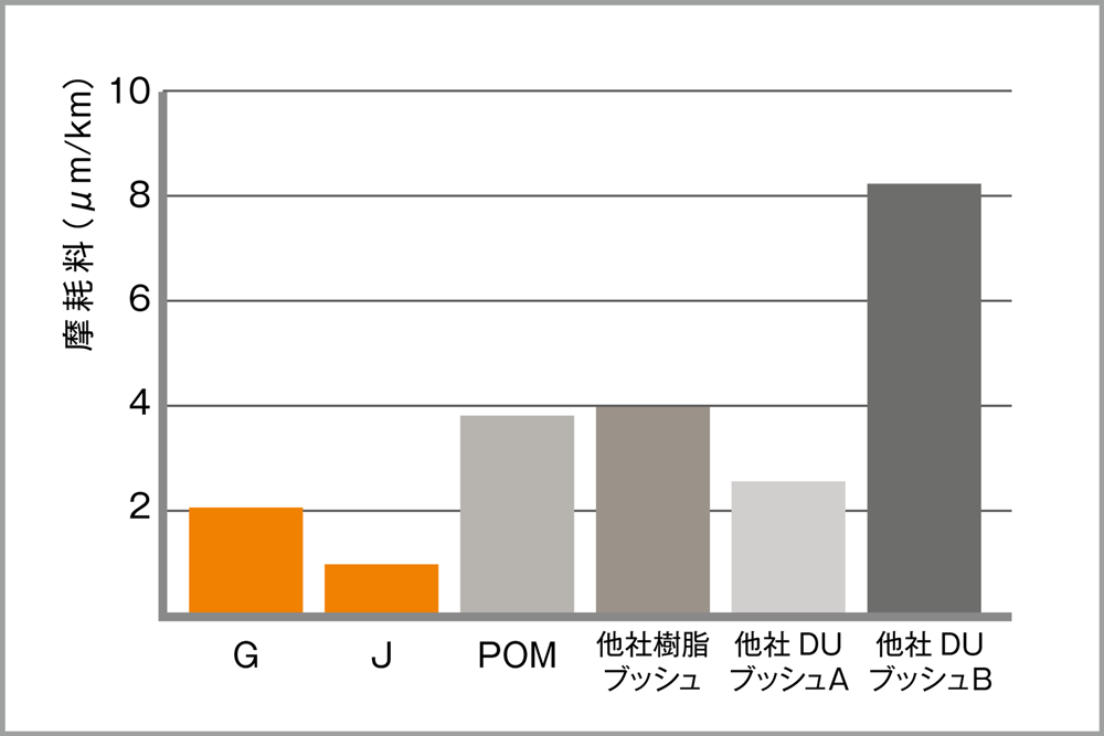 ベースとなるポリマーに固体潤滑材が配合されているため、自己潤滑性があり油などの潤滑剤を必要としません。これにより衛生的でゴミの巻き込みによる不具合も防ぎます。