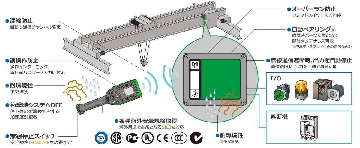 ワイヤレスで操作可能なホイストシステム。無線操作を配慮した抜群の操作性と、各種安全規格に準拠した安心性を両立したホイストシステムです。