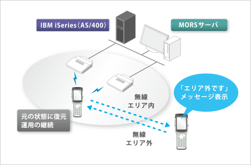 IBM System i5(旧 AS/400)シリーズからの無線端末エミュレートを実現することにより、無線端末も含めた全ての業務システムをホスト環境で開発可能にします。