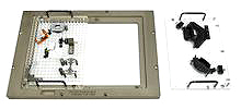この治具はフレームとアクリル製サブプレートから構成されており、サブプレートは全フレームサイズの全域、半分、または四分の一を使用するように設計できます。フレームは防酸化処理済みアルミニウム製で、お使いの画像測定機に合わせて設計されます。