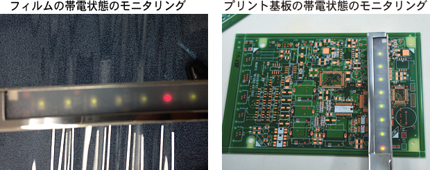 一瞬の変化を認識し、帯電や除電の様子を可視化出来る画期的なツールです。(+帯電は赤、−帯電は緑LEDが点滅)