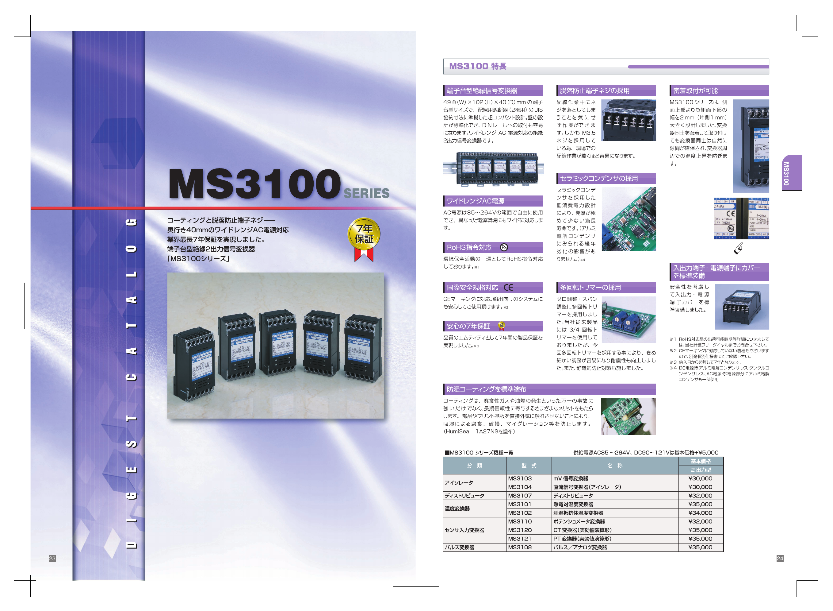 端子台タイプ 絶縁2出力信号変換器 MS3100シリーズの関連カタログ