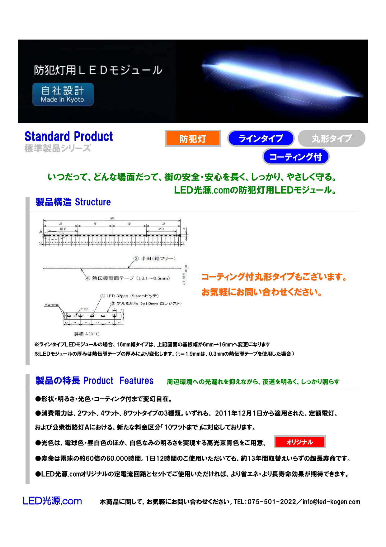 防犯灯用コーティングモジュール製品パンフレットのダウンロード (314.2Kb)