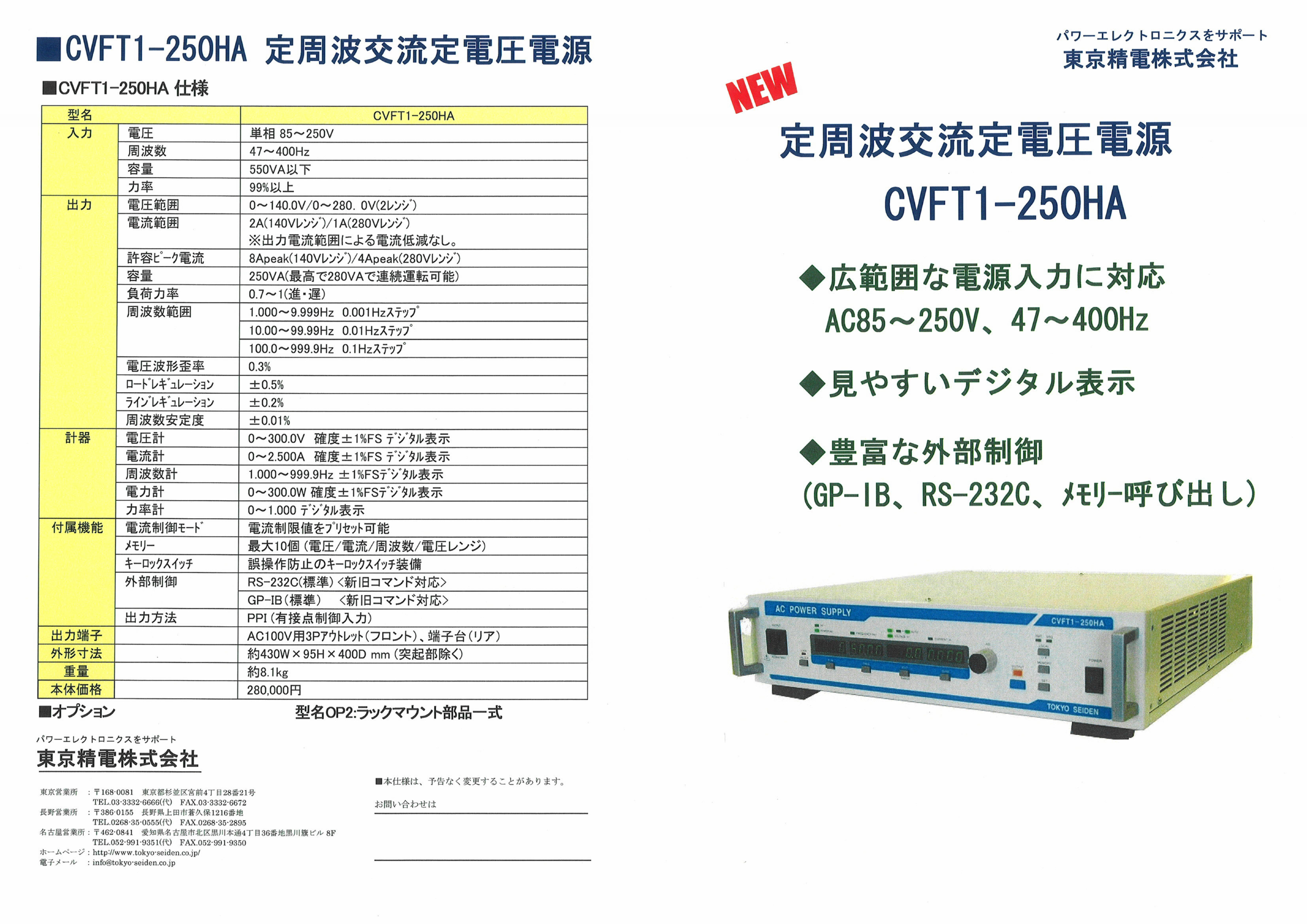定周波交流定電圧電源 CVFT1-250HAのダウンロード (4Mb)