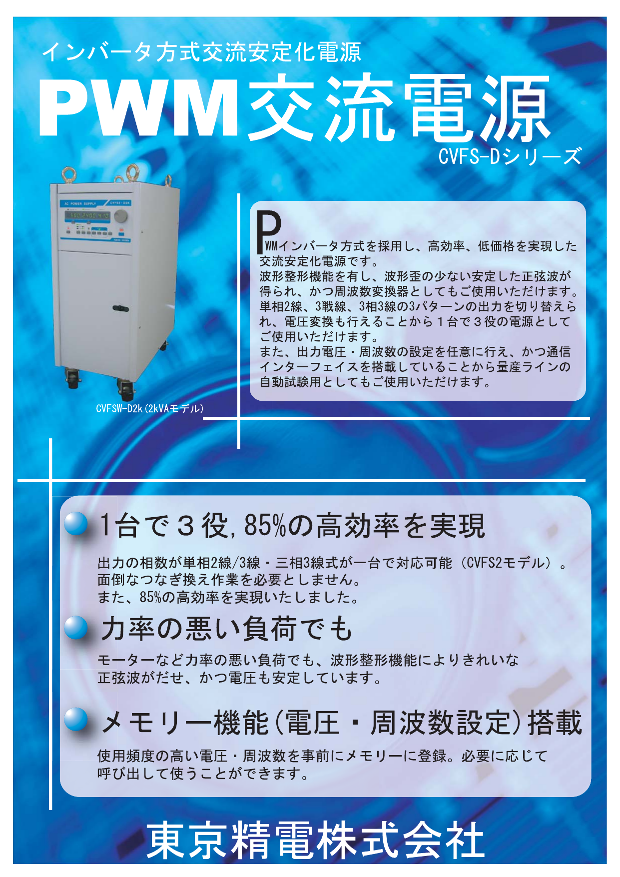 インバータ方式交流安定化電源 PWM交流電源 CVFS-Dシリーズのダウンロード (598Kb)