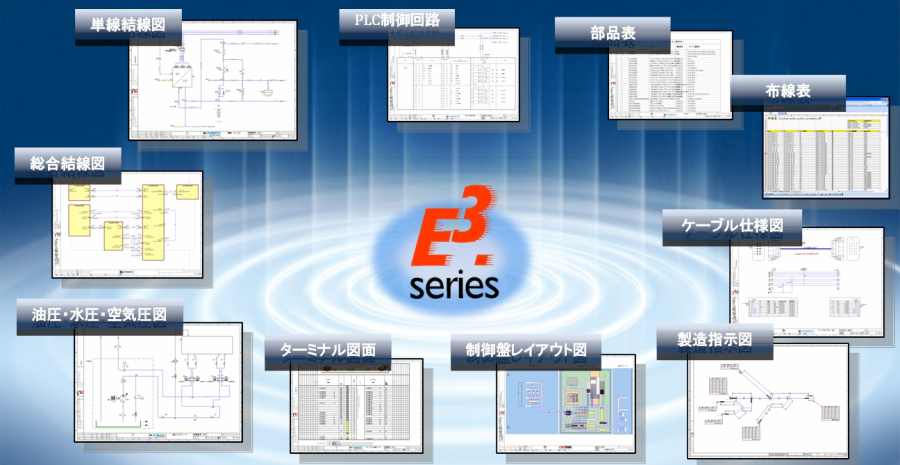 電気制御・ケーブル設計用向けの機能が豊富で、操作性に優れたソリューションです。 設計業務そのものはもちろん、図面・ドキュメント作成業務での、コネクタ嵌合情報等の部材仕様チェックのオンライン化、総合結線図とケーブル仕様図の整合性確保、各種帳票類の自動出力を得意としています。 設計者の皆様の設計付帯業務を徹底的に削減し、さらにケーブルや部材発注ミス・装置組み付け時のトラブルを撲滅します。 展開接続図・ケーブル仕様図・制御盤レイアウト図などユーザーの設計フローに即して、どの段階からでもスタートでき、導入にあたり設計フローをツールに合わせる必要はありません。 加えて、E3.seriesには、図研のCR-5000やCR-8000などの電気設計システムや、メカニカル設計システム、PLM、そしてERPなど外部システムとのインターフェースも用意されており、スムーズな部門間連携を実現します。 E3.seriesは、既に欧米において、工作機械、産業機器などメカトロニクス市場の有力メーカーを中心に約2,000社、25,000ライセンス以上の実績を持っています。 これまでテコ入れされていなかった領域に対して、E3.seriesは「新しい力」となり皆様の有益な仕組みとなることでしょう。