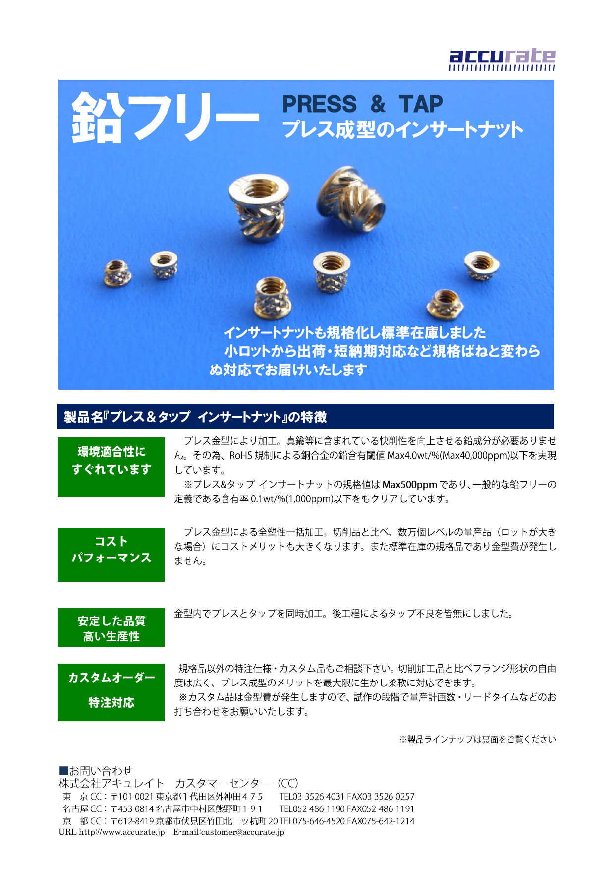 鉛フリーPRESS & TAPプレス成型のインサートナットのダウンロード (448.9Kb)