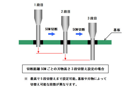 刃物高さの自動段切替により、刃物を最大限使用することが可能