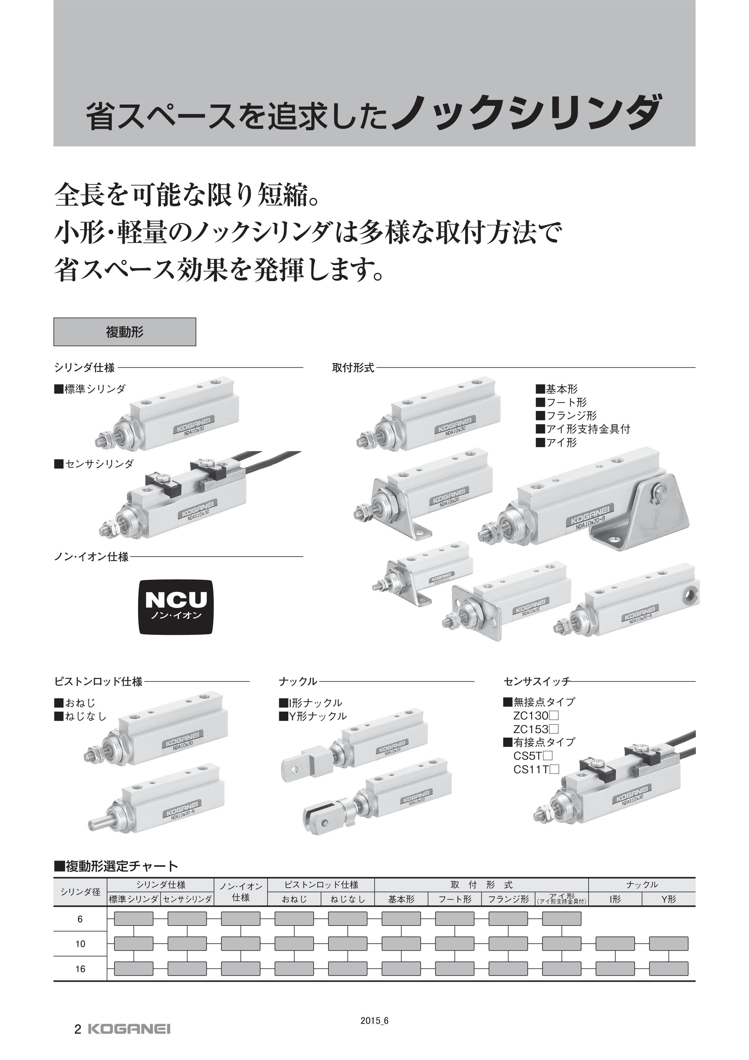複動形●シリンダ径Φ6~16 ショートボディと多様な取付けで機械装置のシンプル化を実現。