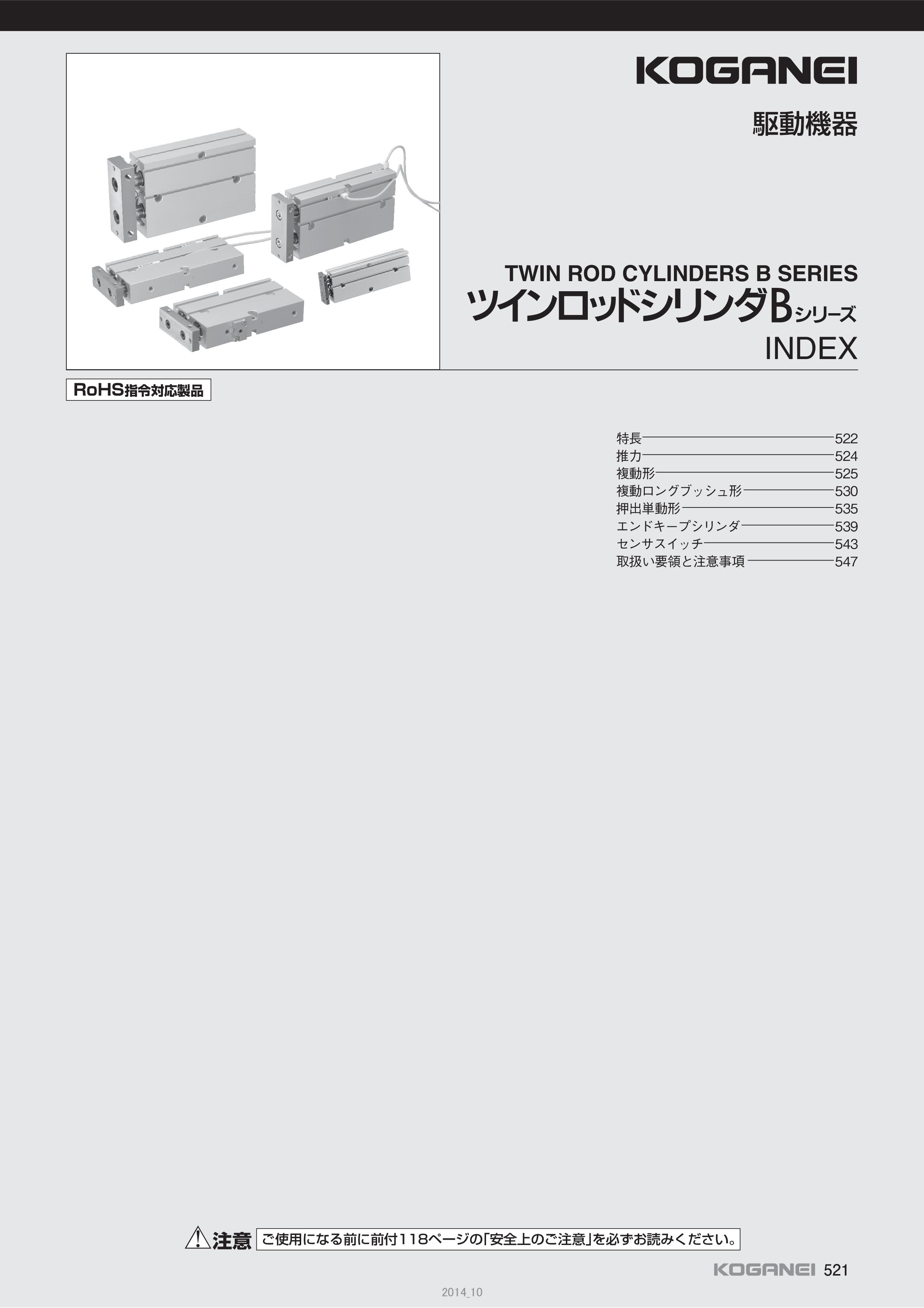 ●シリンダ径Φ10~25 2本のシリンダをコンパクトに一体化した、独創の回転レスシリンダ。復帰用スプリング内臓の単動形.