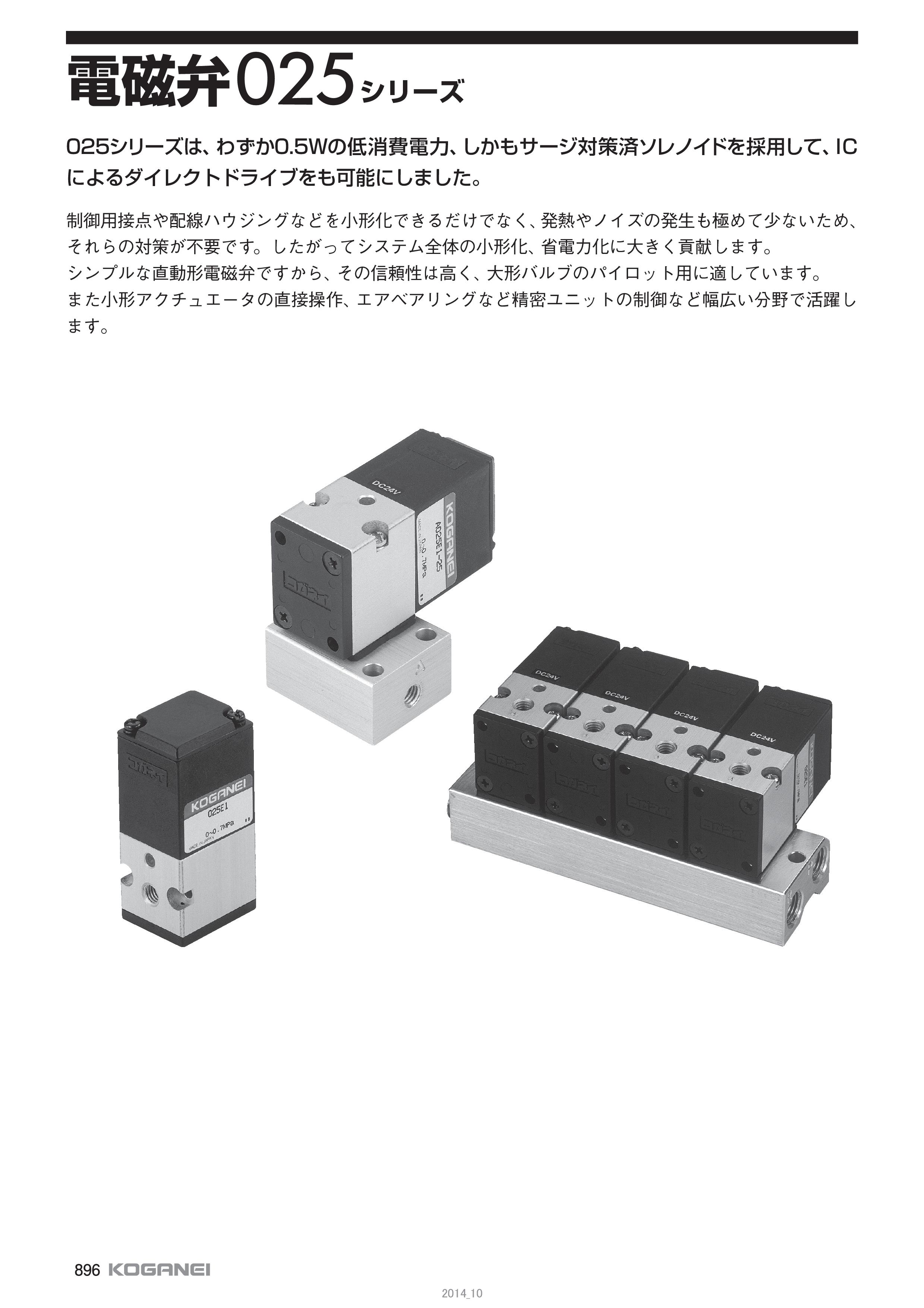 0.5Wの低消費電力の直動弁。しかもサージ対策済ソレノイドでICによるダイレクトドライブを実現。