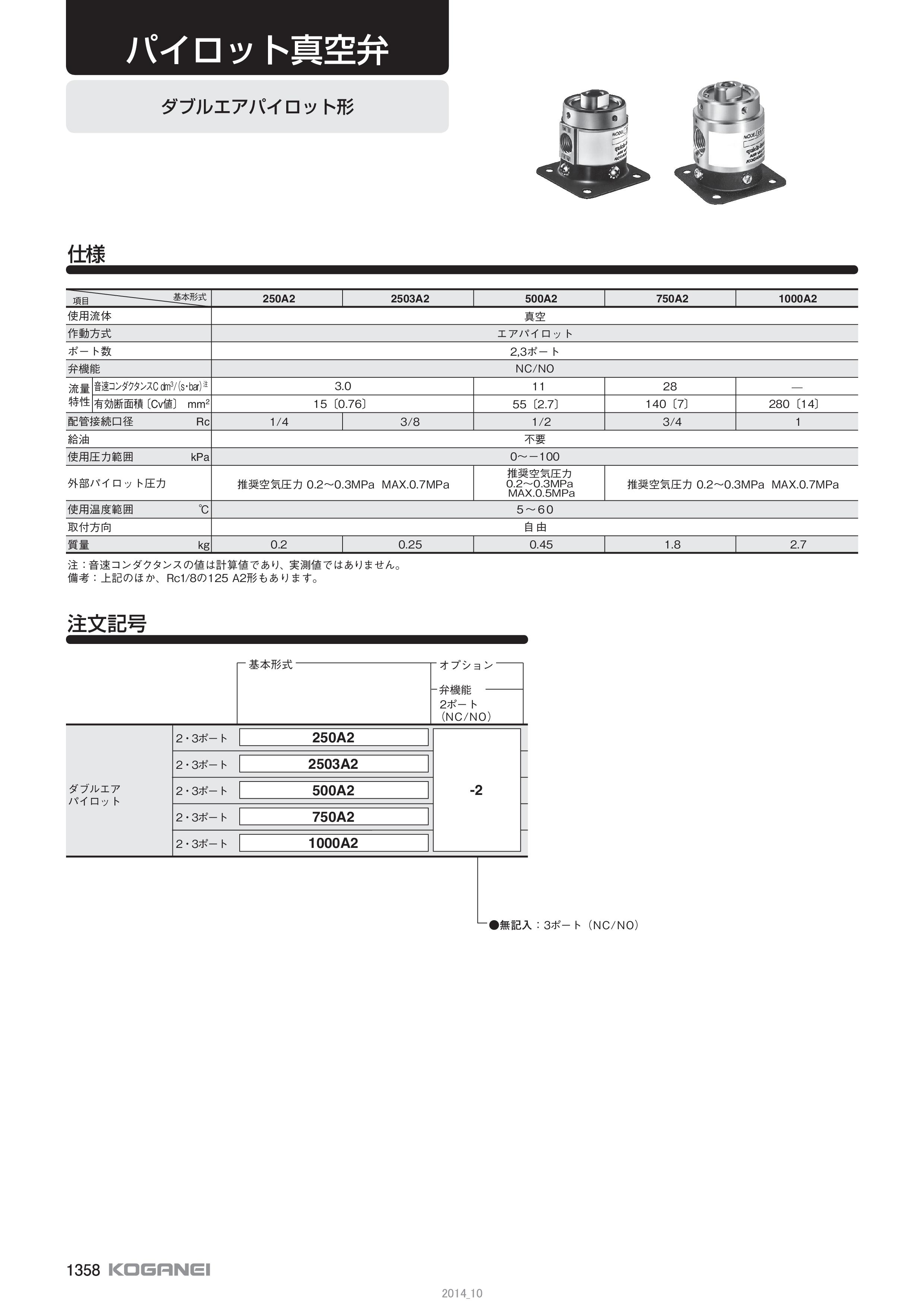 パイロット真空弁250A2シリーズの関連カタログ