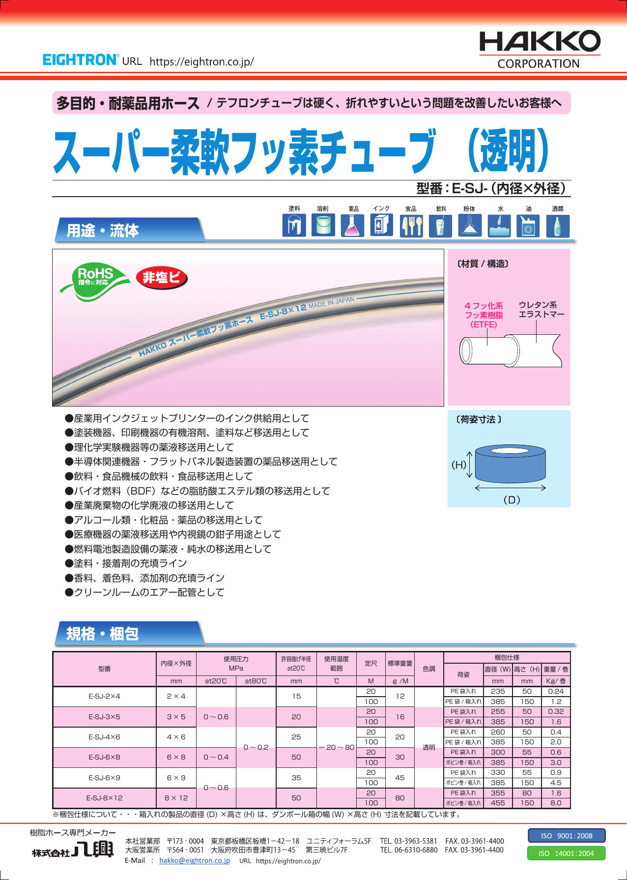 多目的・耐薬品チューブ スーパー柔軟フッ素チューブ〔E-SJ〕のダウンロード (1.2Mb)