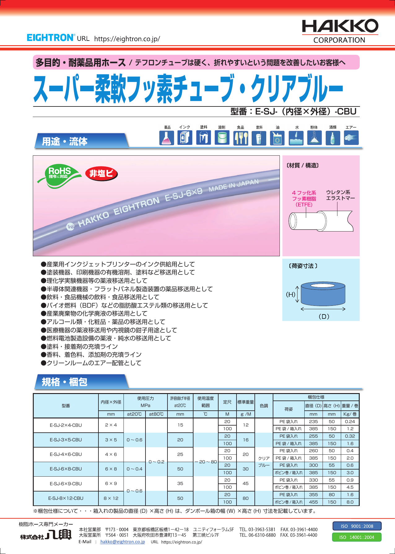 多目的・耐薬品チューブ スーパー柔軟フッ素チューブ・クリアブルー〔E-SJ-CBU〕のダウンロード (1.2Mb)