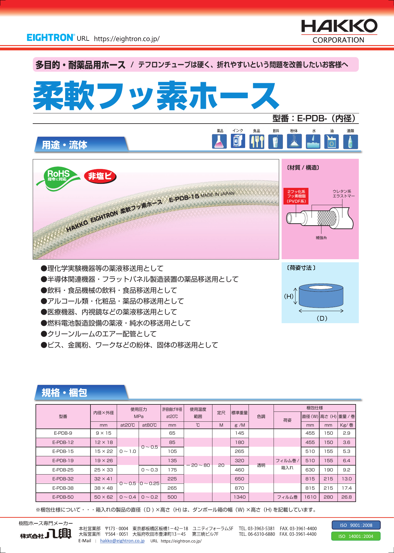 多目的・耐薬品用ホース 柔軟フッ素ホース〔E-PDB〕のダウンロード (1.1Mb)