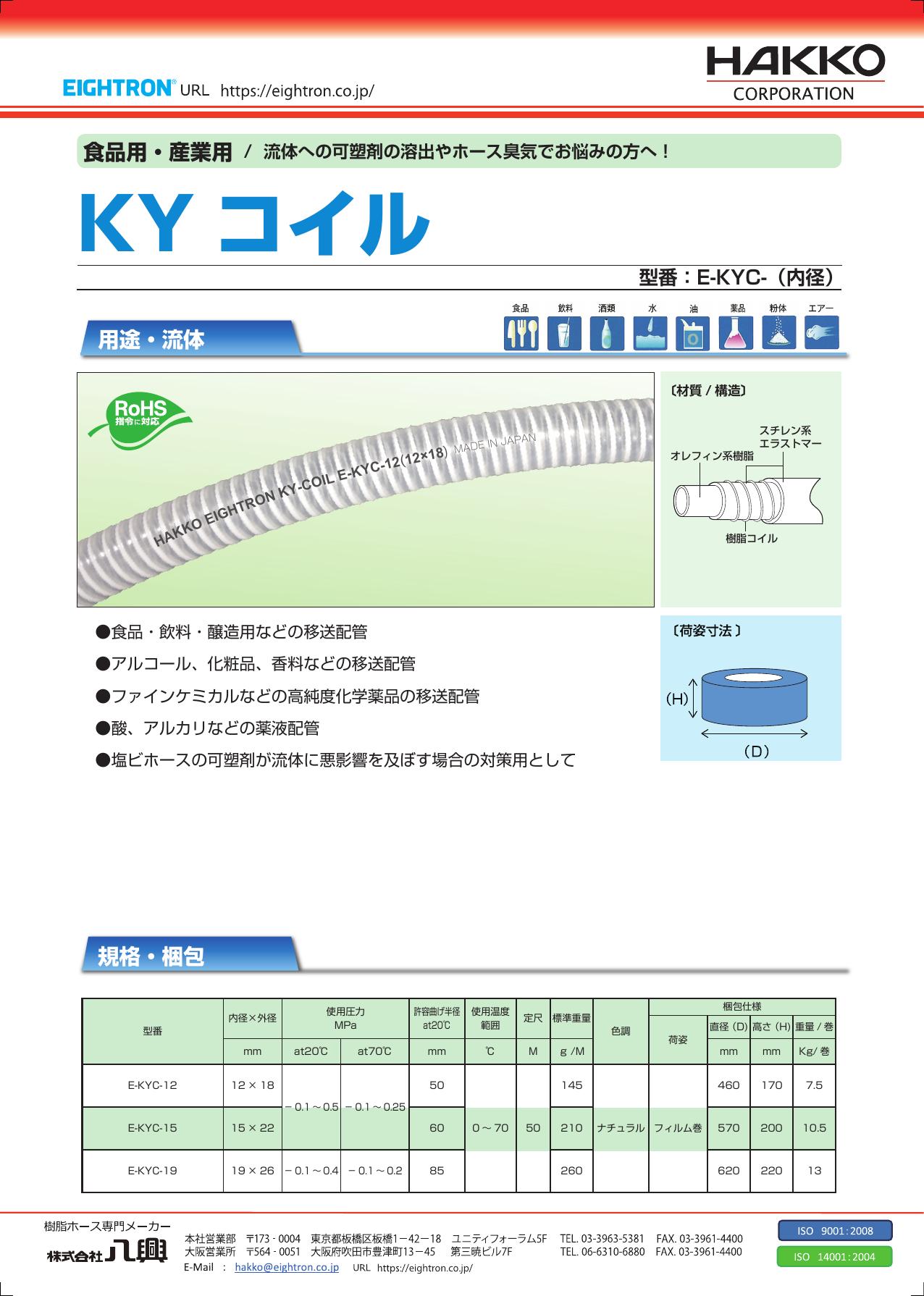 食品用・産業用ホース KYコイル〔E-KYC〕のダウンロード (1.1Mb)