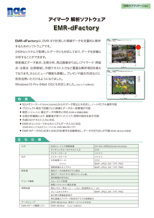 視線解析ソフトウェア EMR-dFactory 製品カタログのダウンロード (855.4Kb)