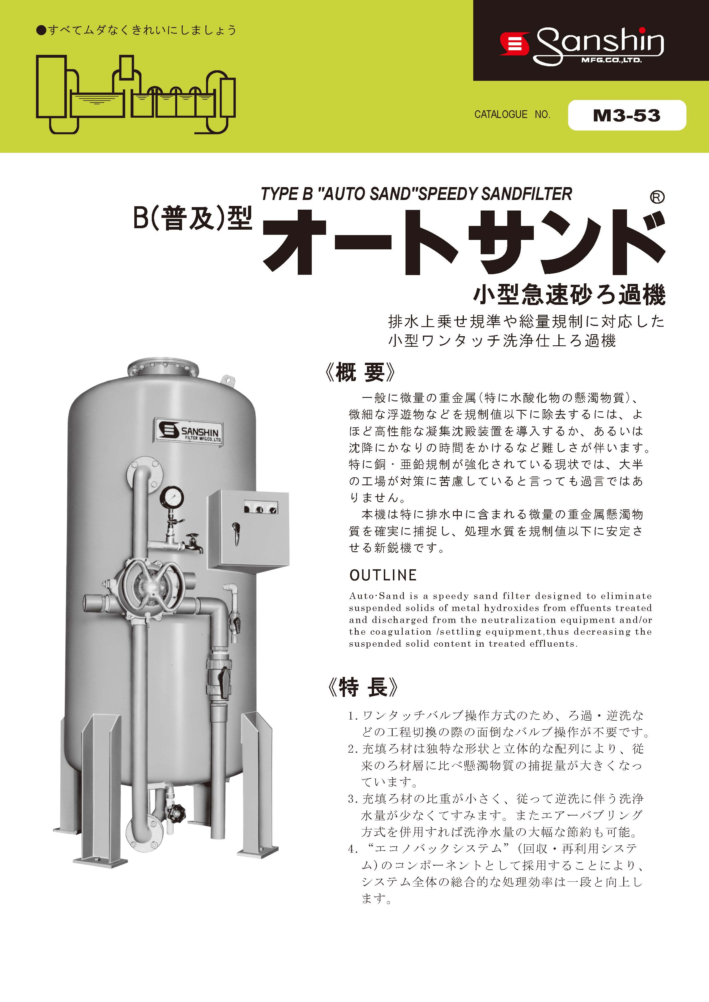 小型急速砂ろ過機「B型オートサンド」の関連カタログ