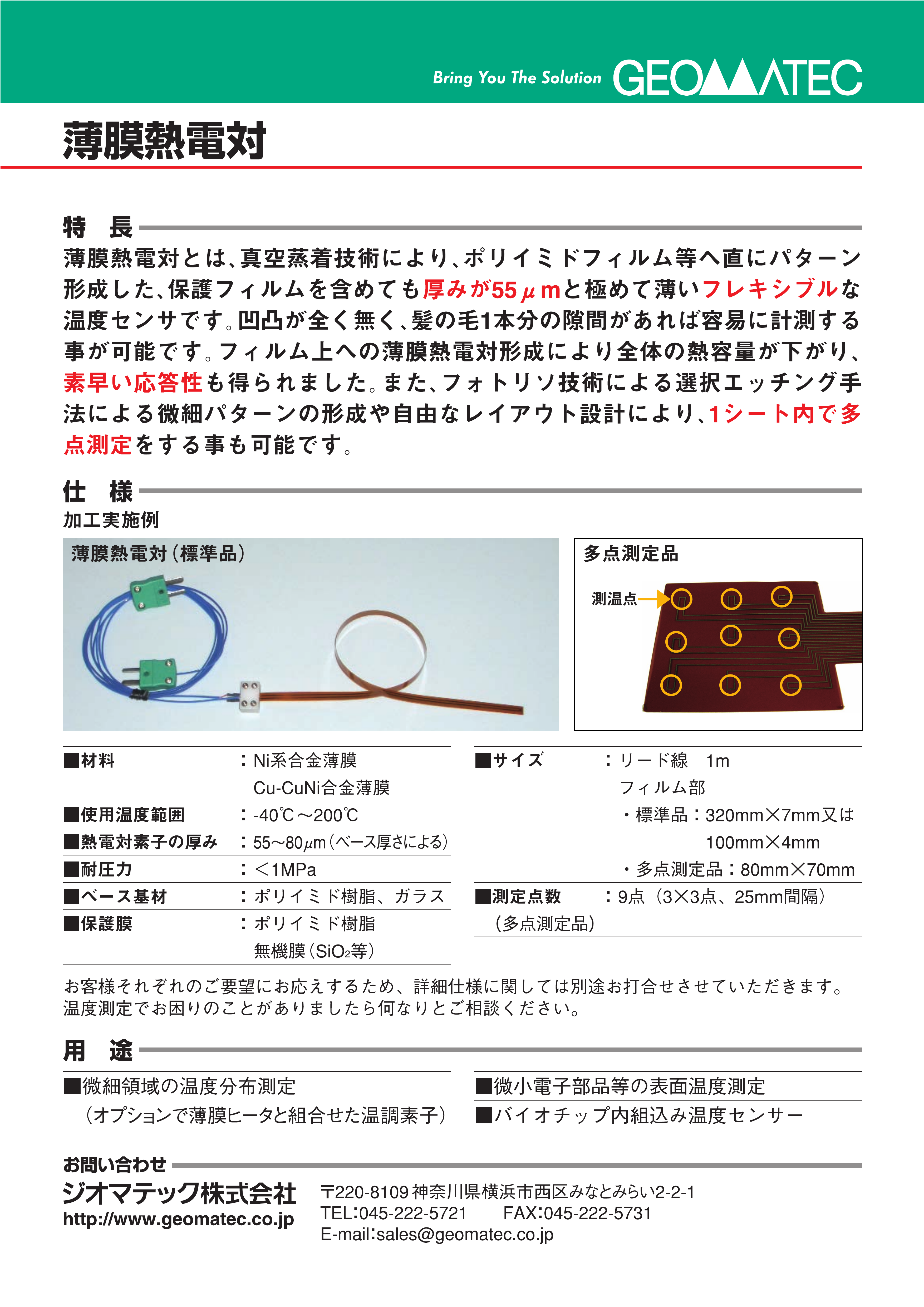 薄膜熱電対の関連カタログ